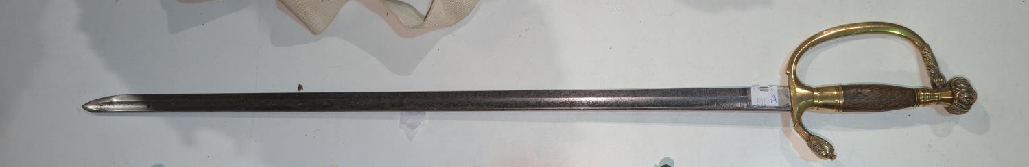 A possibly French officer’s dress sword with etched blade, length 65cm.